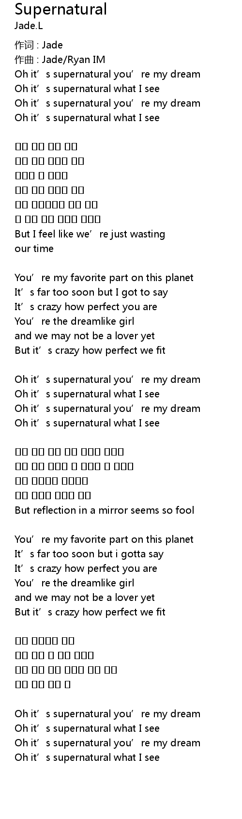 | Oh it' s supernatural you' re my dream | |