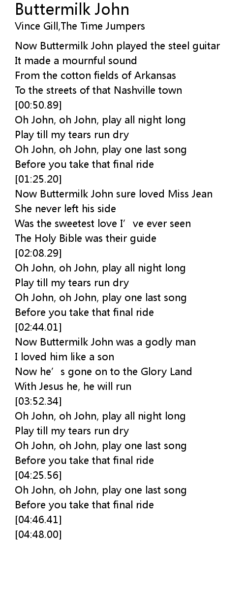 | [00:18.27] | Now Buttermilk John played the steel guitar |
