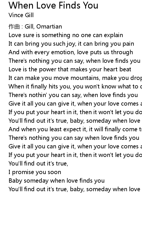 | There's nothin' you can say, when love finds you | |