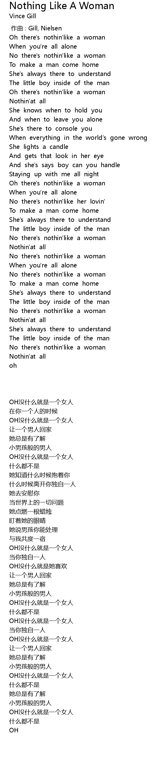 | [00:49.868] | Oh there' s nothin' like a woman |