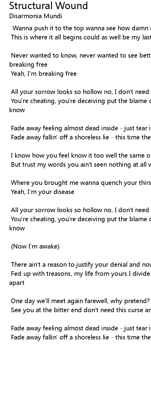 Fade away fallin' off a shoreless lie - this time the wound is structural |
