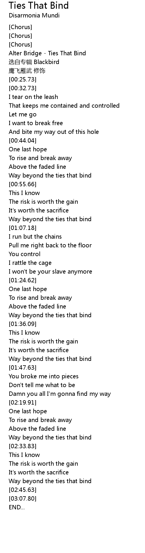| [00:05.00] | Alter Bridge - Ties That Bind |