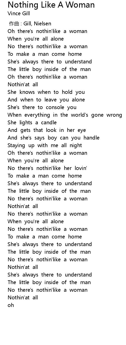 | [00:25.312] | No there's nothin'like a woman |