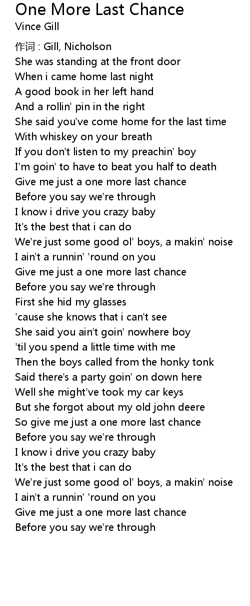 | Give me just a one more last chance | |