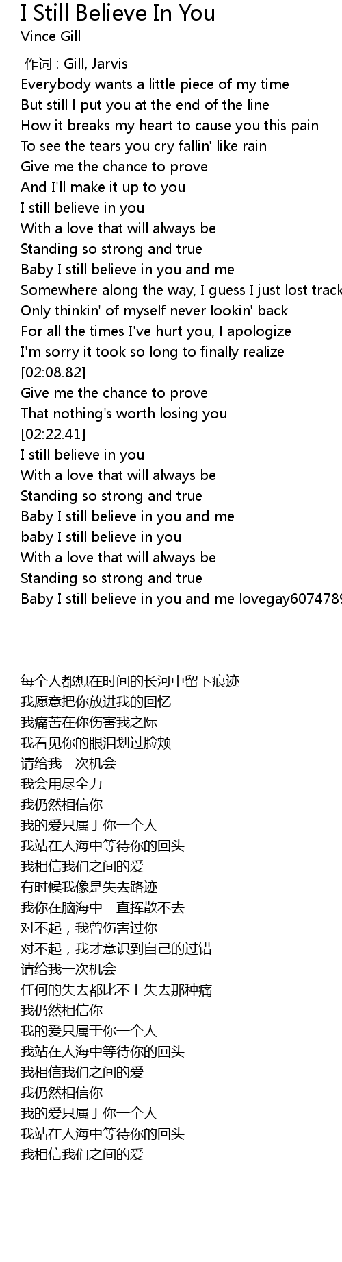 | [03:25.75] | Baby I still believe in you and me lovegay6074789 |