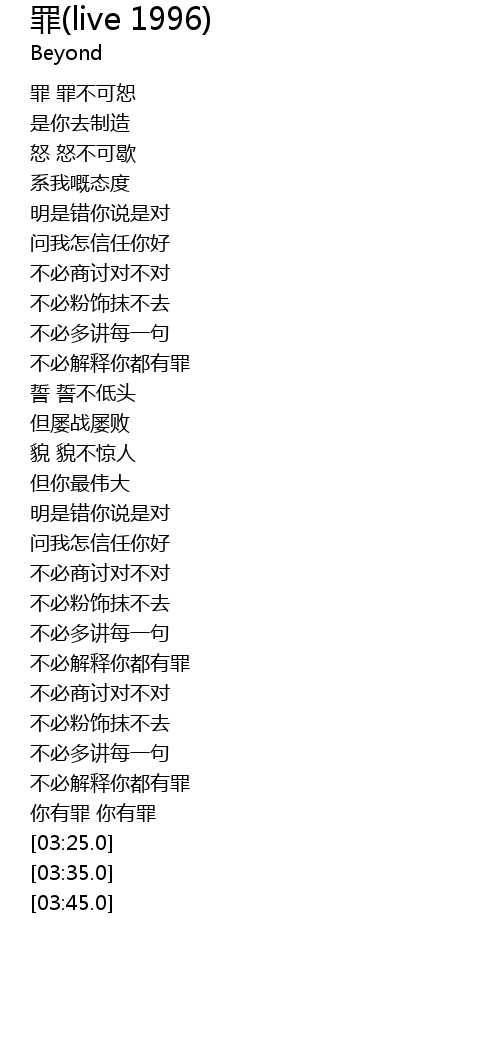 | [02:55.0] | bù bì jiě shì nǐ dōu yǒu zuì |