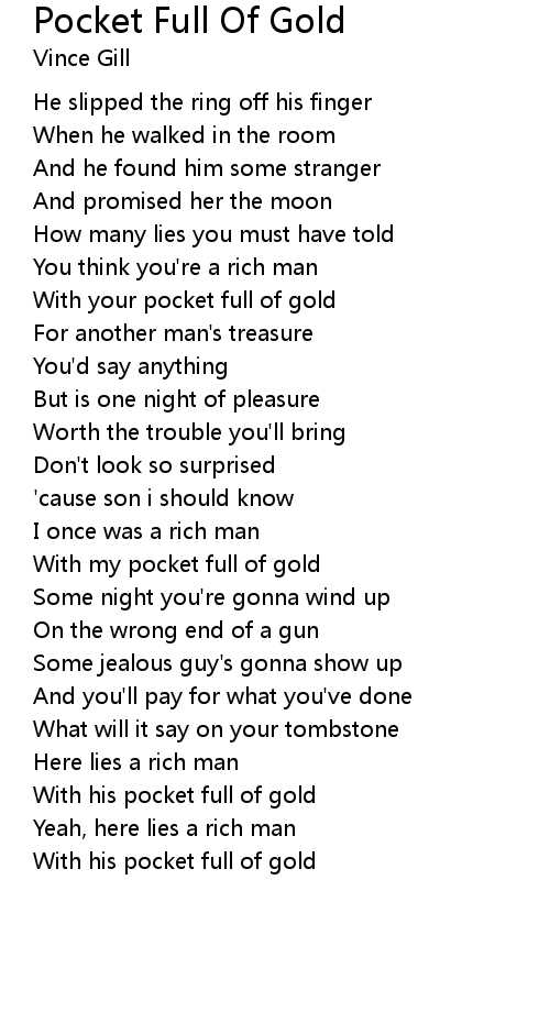 With your pocket full of gold |