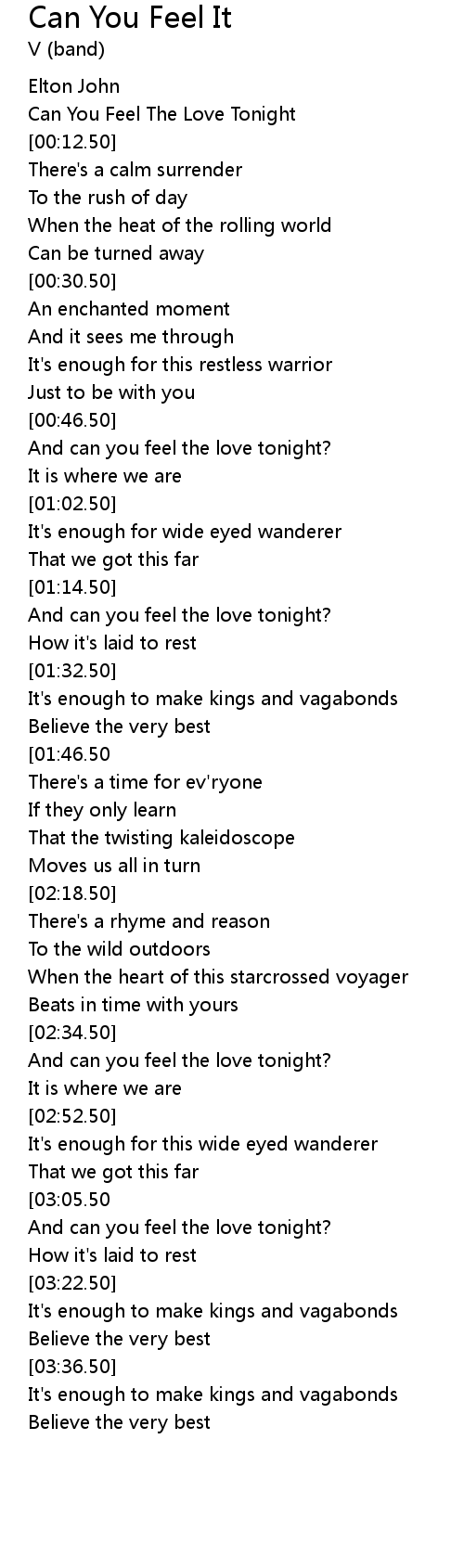 And can you feel the love tonight? |