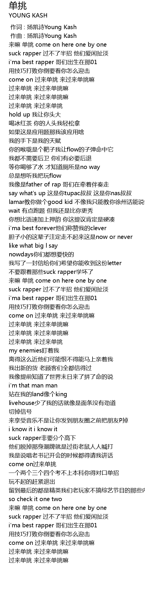 | Song | 单挑 |