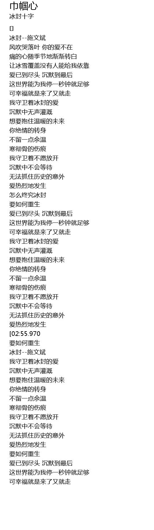| [04:03.300][02:55.970] | 怎么终究冰封 |