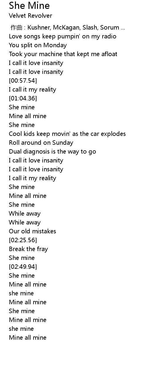 | [00:00.00] | 作曲 : Kushner, McKagan, Slash, Sorum ... |