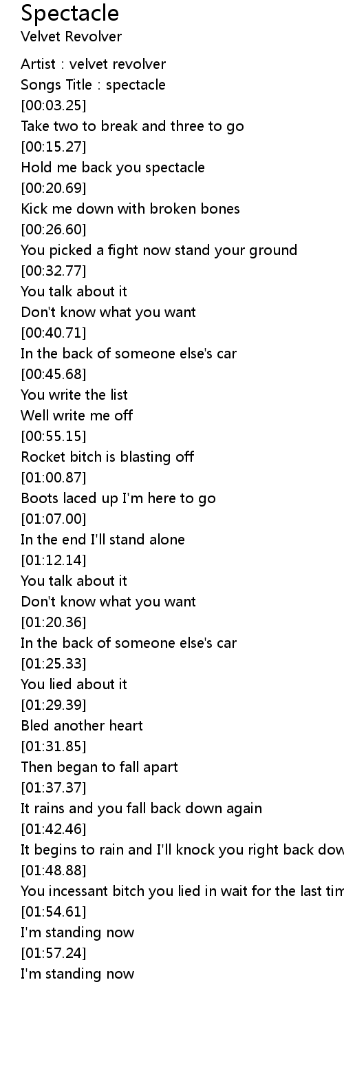 | [01:49.80] | You incessant bitch you lied in wait for the last time now |