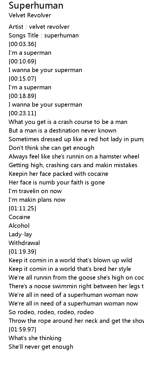| [01:47.68] | We're all in need of a superhuman woman now |