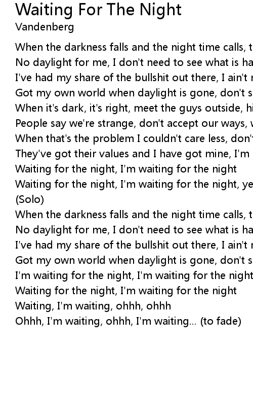 Ohhh, I'm waiting, ohhh, I'm waiting... (to fade) |