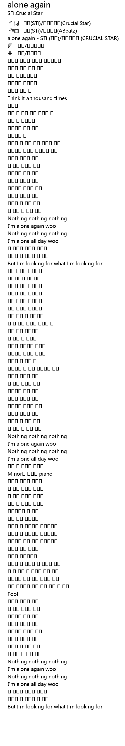 | [00:00.00] | alone again - STi (스티)/크루셜스타 (CRUCIAL STAR) |