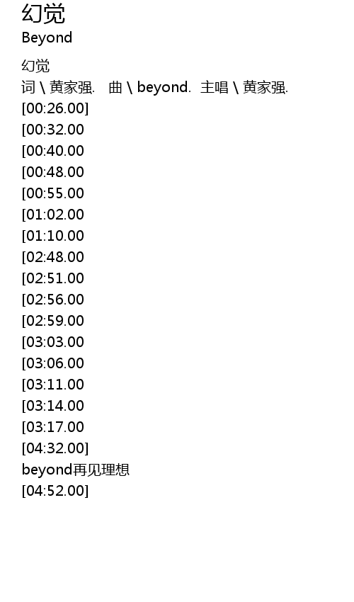 | [00:12.00] | 词 \ 黄家强. 曲 \ beyond. 主唱 \ 黄家强. |