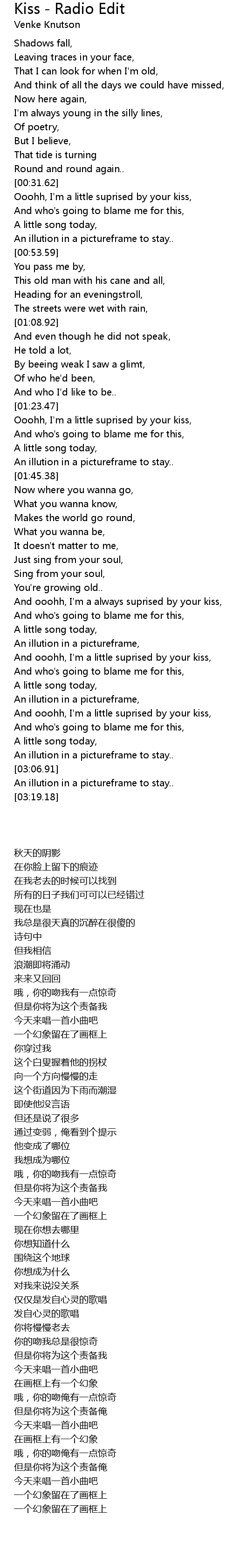 And ooohh, I'm a always suprised by your kiss, |
