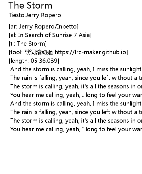| [03:45.868] | The storm is calling, yeah, it's all the seasons in one day |