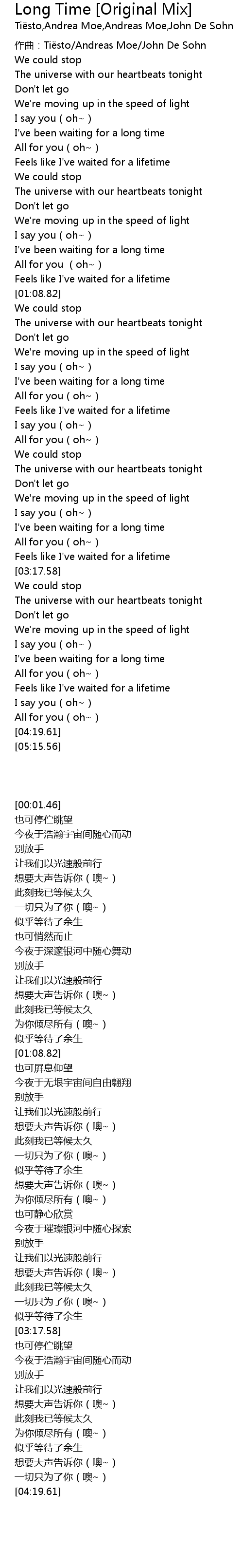 | [00:01.46] | zuò qǔ: Ti sto Andreas Moe John De Sohn |