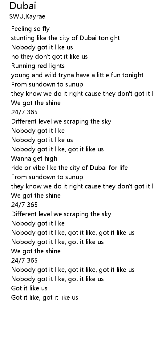 | [01:47.324] | Nobody got it like, got it like, got it like us |