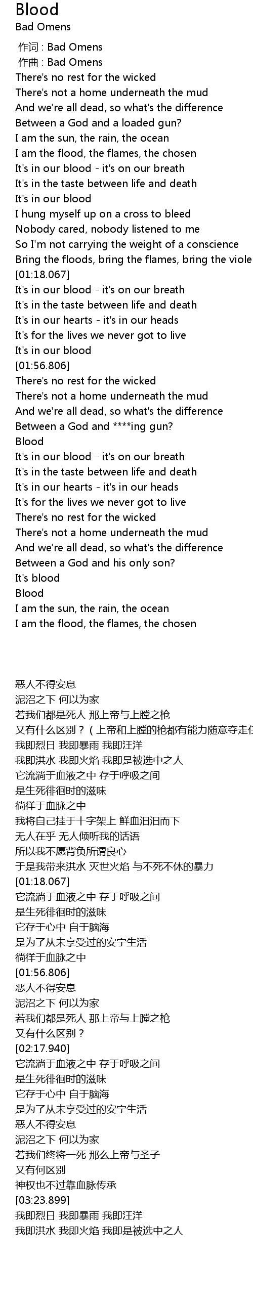 | [00:01.000] | zuò qǔ : Bad Omens |