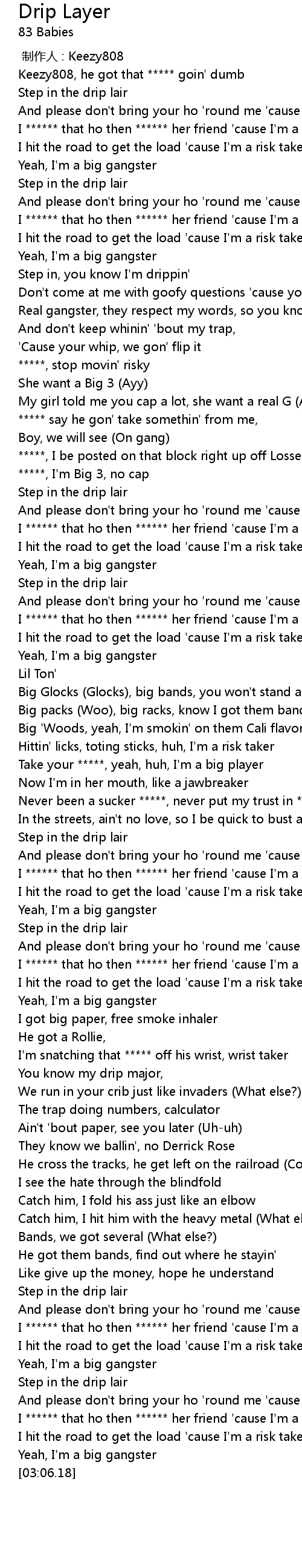 | [00:16.26] | I ****** that ho then ****** her friend 'cause I'm a big player |