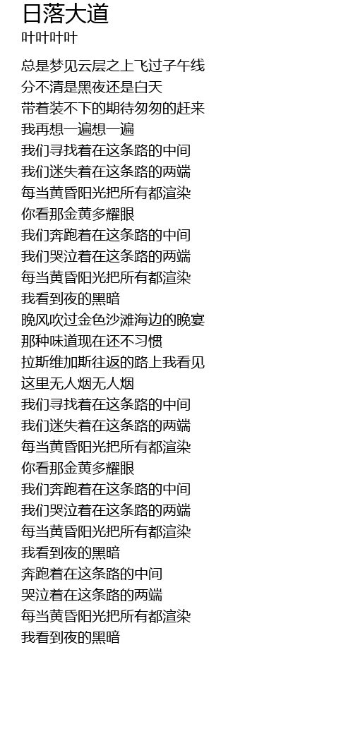 | [00:41.923] | 我们寻找着在这条路的中间 |