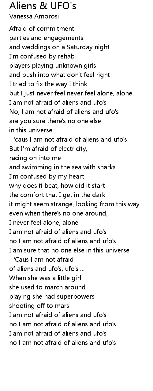 | ' caus I am not afraid of aliens and ufo' s | |