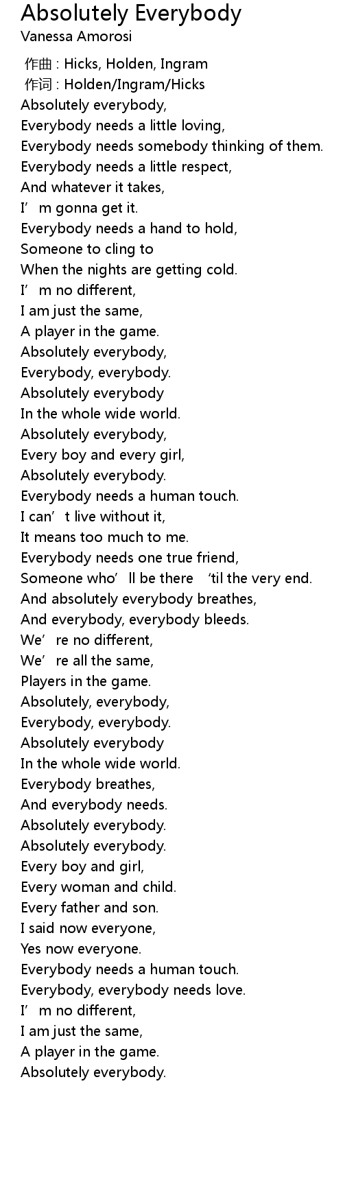 | [00:48.95] | Everybody needs a hand to hold, |