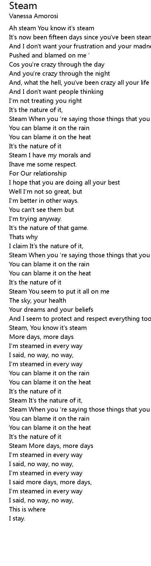 Steam When you 're saying those things that you don't really mean |