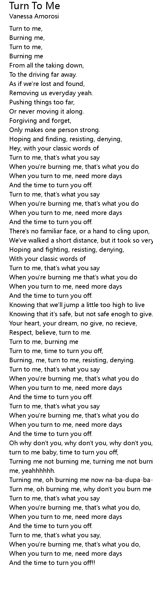 Turn to me, burning me |