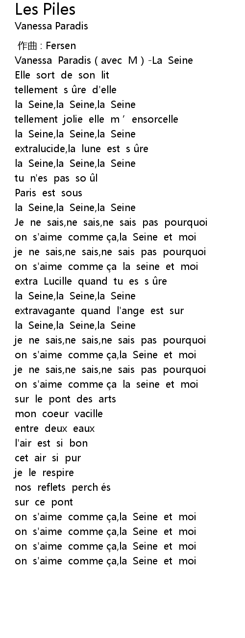 | [00:03.53] | Vanessa Paradis avec M La Seine |