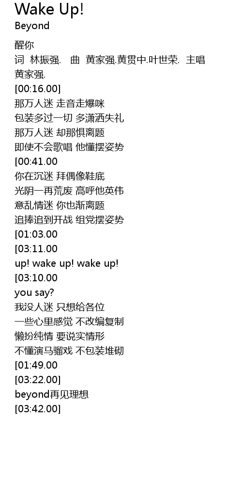 | [03:32.00] | beyond zài jiàn lǐ xiǎng |