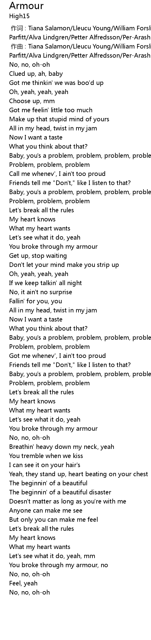 | [00:40.23] | Baby, you' s a problem, problem, problem, problem |