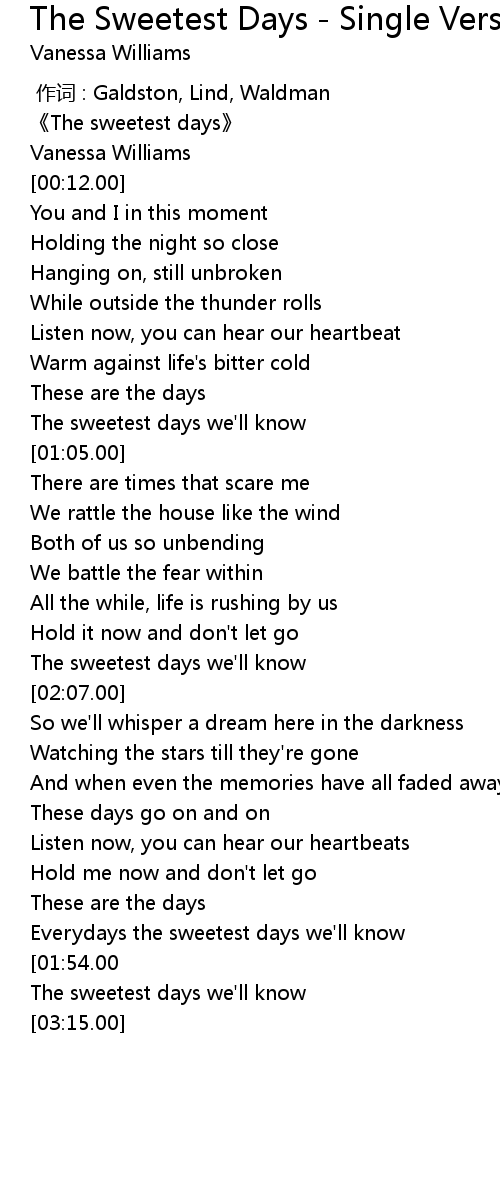 | [00:05.00] | 《The sweetest days》 |