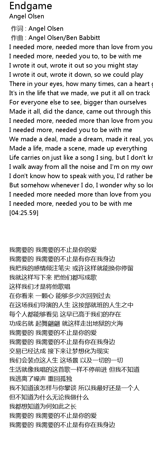 | [00:00.42] | 作曲 : Angel Olsen/Ben Babbitt |