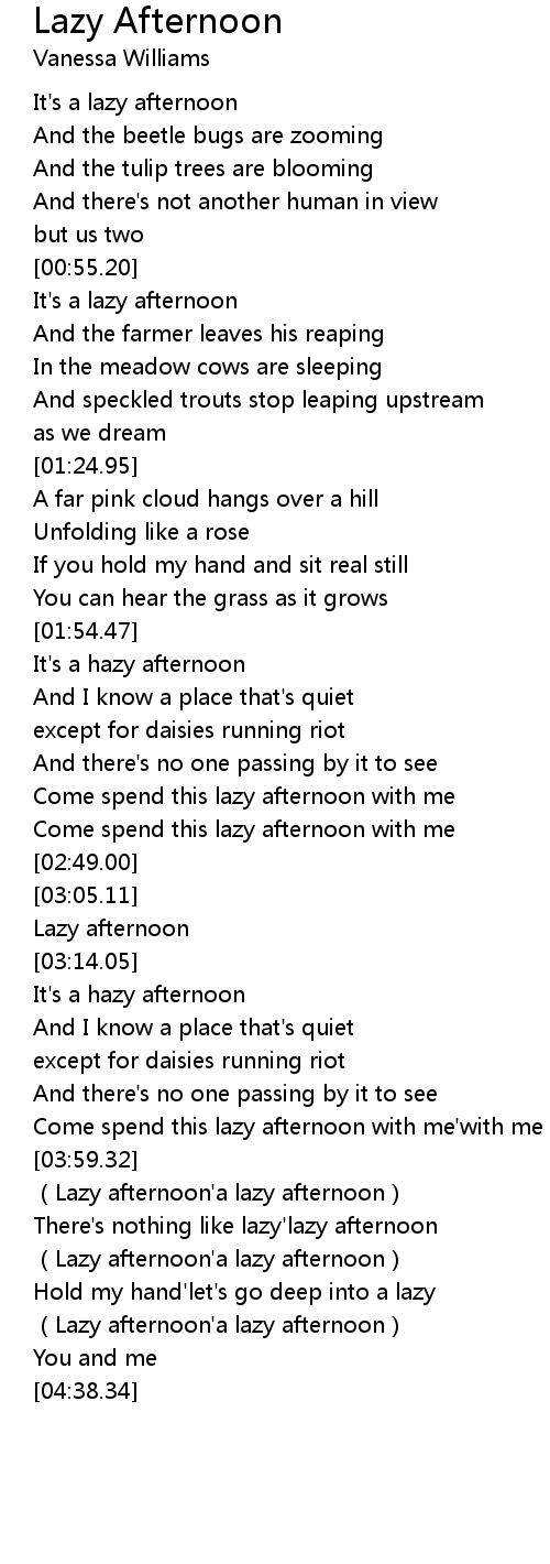 | [04:15.63] | Lazy afternoon' a lazy afternoon |