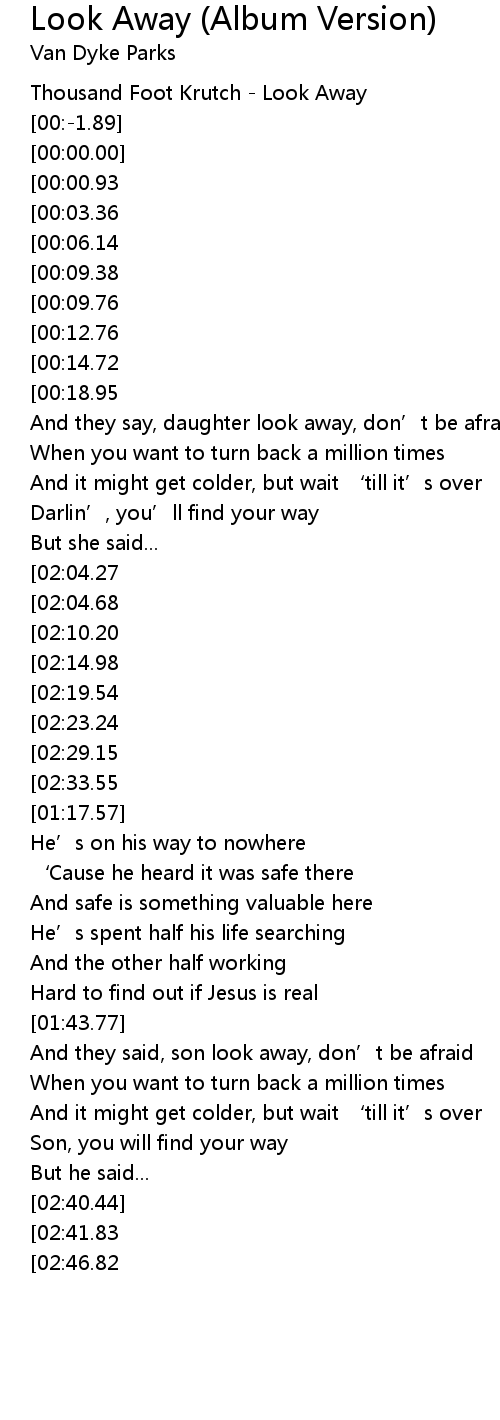 | [00:-2.12] | Thousand Foot Krutch Look Away |