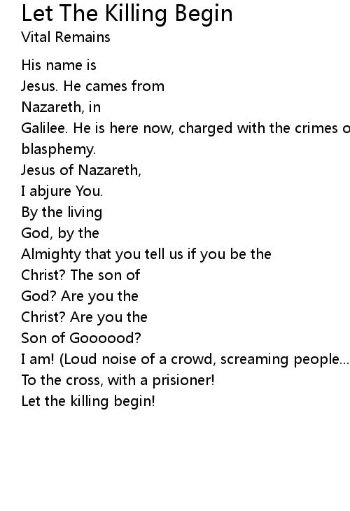| Song | Let The Killing Begin |