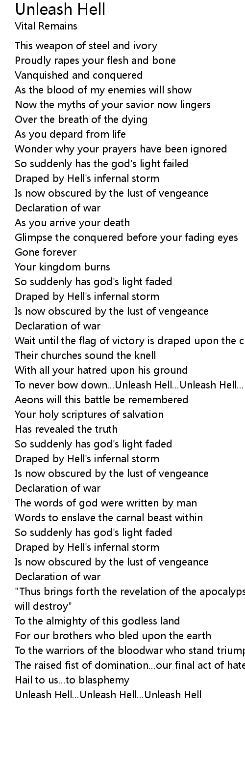 To never bow down...Unleash Hell...Unleash Hell...Unleash Hell |