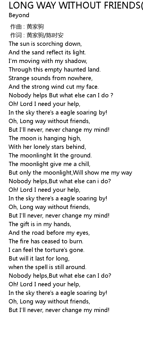| [01:26.990] | Oh, Long way without friends, |