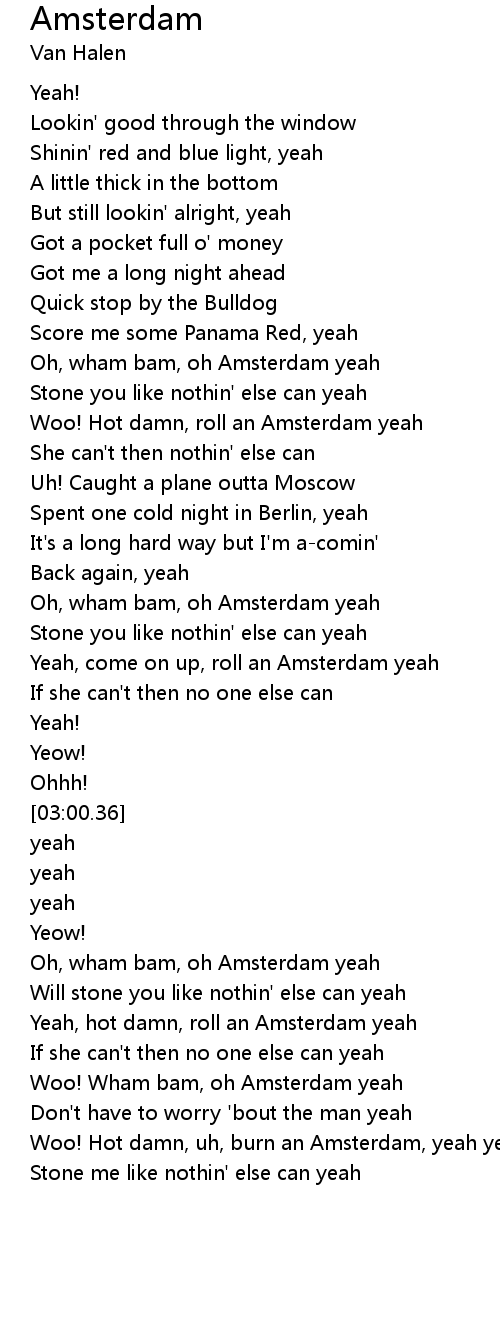 | [03:36.19] | Oh, wham bam, oh Amsterdam yeah |