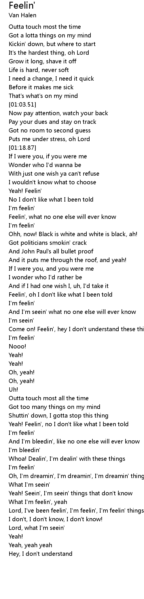 | [02:50.13] | Come on! Feelin', hey I don't understand these things |