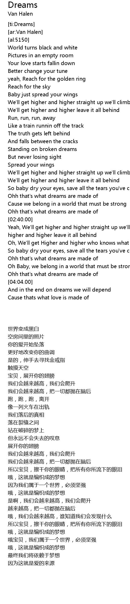 | [02:34.00] | Ohh that's what dreams are made of |