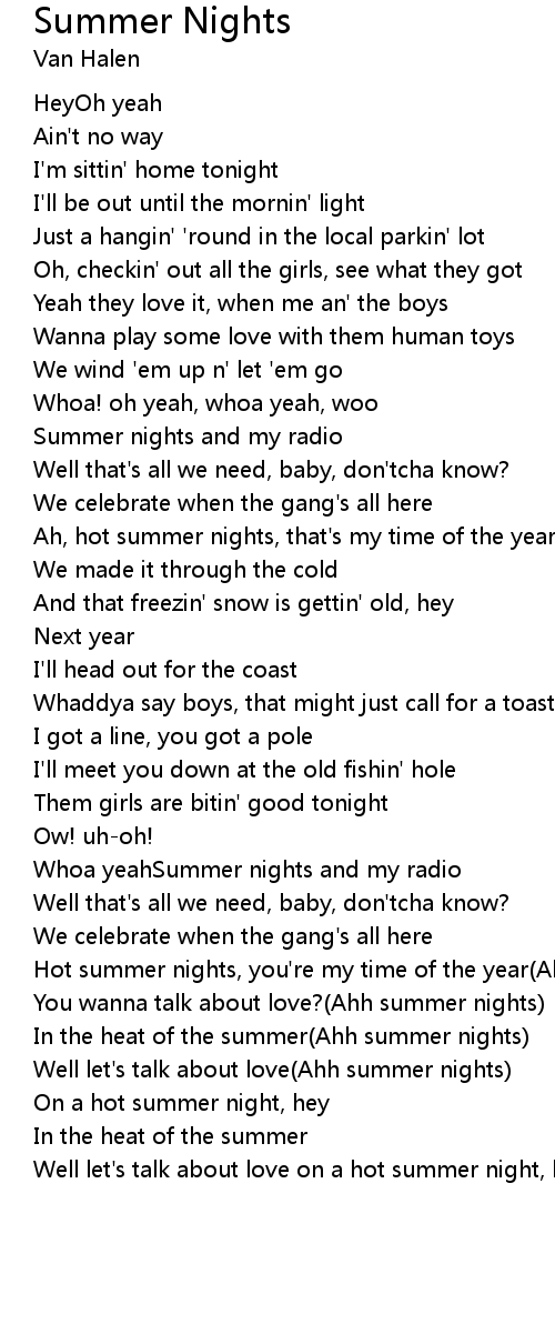 | Hot summer nights, you're my time of the year(Ahh summer nights) | |