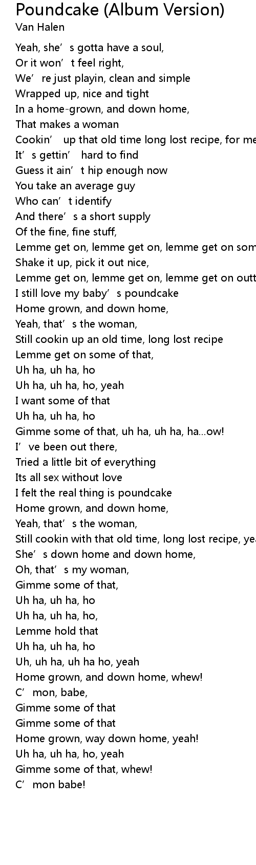 | [02:06.98] | I still love my baby’s poundcake |