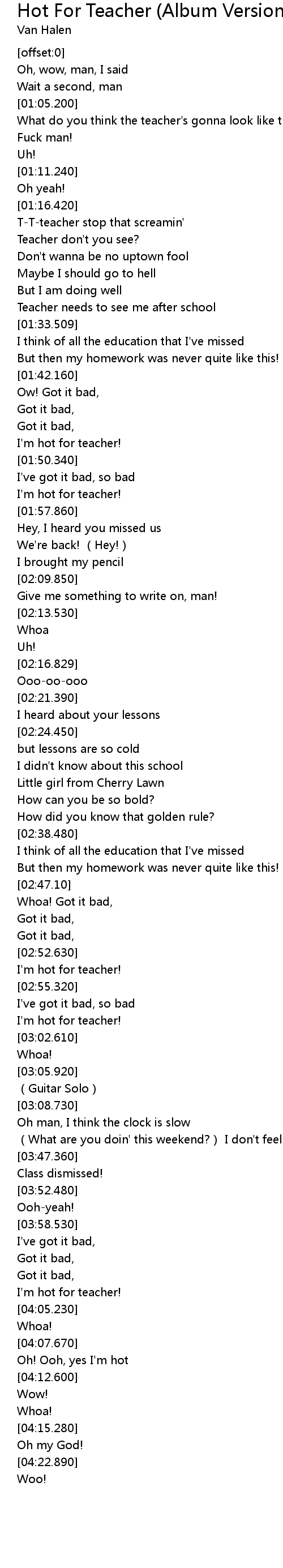 | [03:01.60] | I'm hot for teacher! |