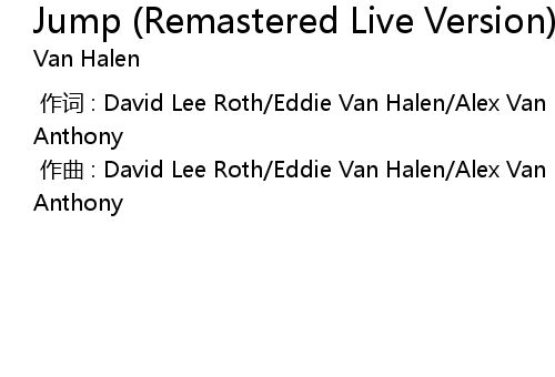 | [00:00.000] | 作词 : David Lee Roth/Eddie Van Halen/Alex Van Halen/Michael Anthony |