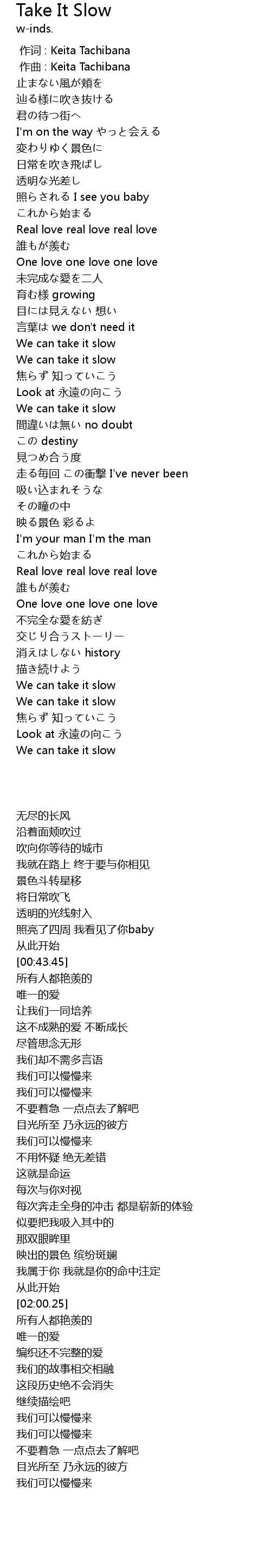 | [00:00.00] | 作词 : Keita Tachibana |