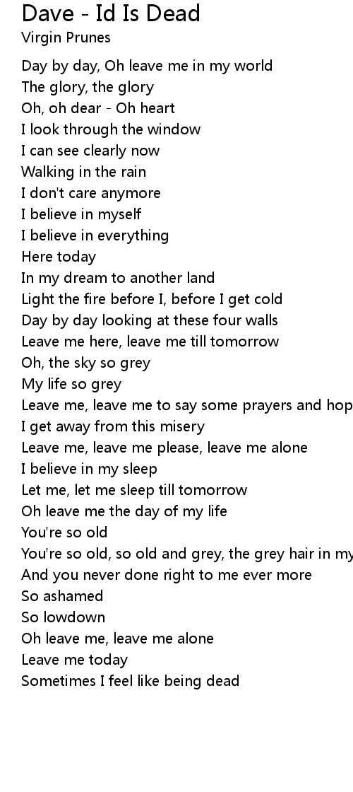 Oh leave me the day of my life |